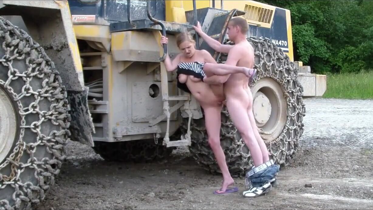 A naughty German amateur loves getting fucked doggy-style outdoors on a construction site, not caring if the workers see her naked body.