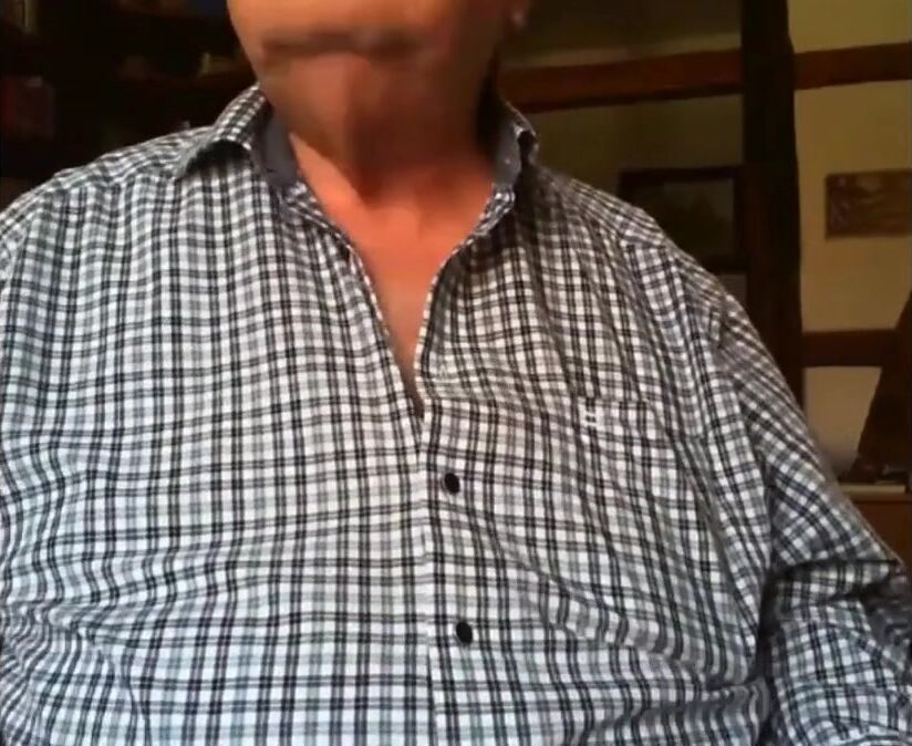 An older, silver-haired man with a beard, a little on the heavier side, slowly and seductively undresses, showing off his body and stroking his cock for the camera. He is a classic daddy figure with a big appetite.