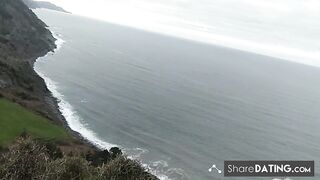 A redhead amateur with glasses and big natural tits gives a POV blowjob in public, then takes it further with anal, creampies, and a cum-covered face—all with a playful, naughty attitude.