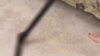 Hot blonde MILF can't resist her urges and uses a vacuum to satisfy herself, squirting uncontrollably as she reaches climax.